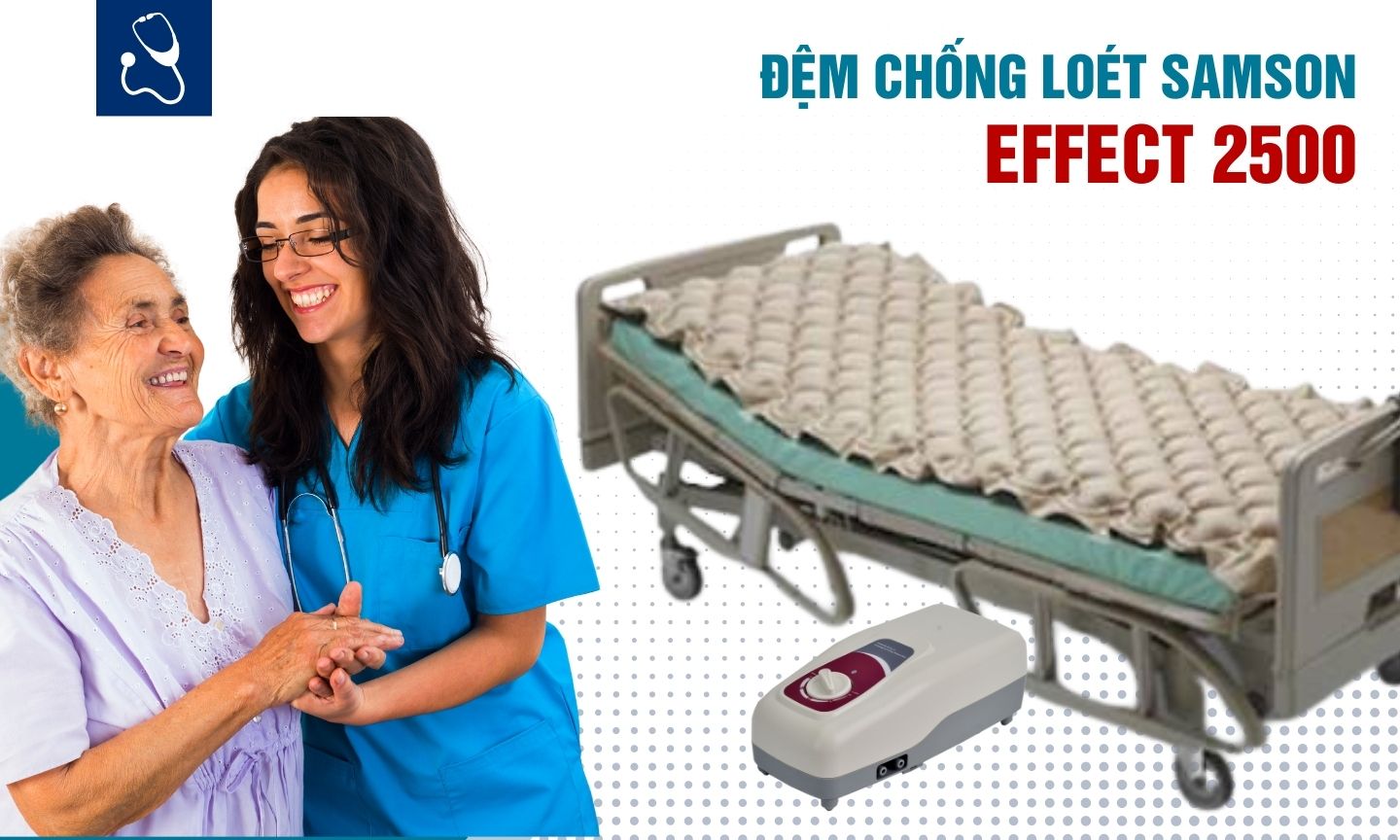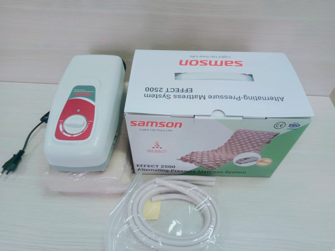 Đệm Hơi Chống Loét Samson Effect 2500 hỗ trợ ngăn chặn chứng lở loét do nằm lâu của các bệnh nhân bị liệt, phỏng, gãy xương, sau phẫu thuật và người già. Cấu tạo bởi 130 múi hơi tạo cảm giác êm thoáng Đệm hơi chống loét Samson Effect 2500 làm giảm tối đa áp lực lên các điểm tiếp xúc với da, ngăn ngừa việc phát triển loét da, giảm đau đớn vết loét và giúp hỗ trợ cho việc điều trị loét da hiện có.